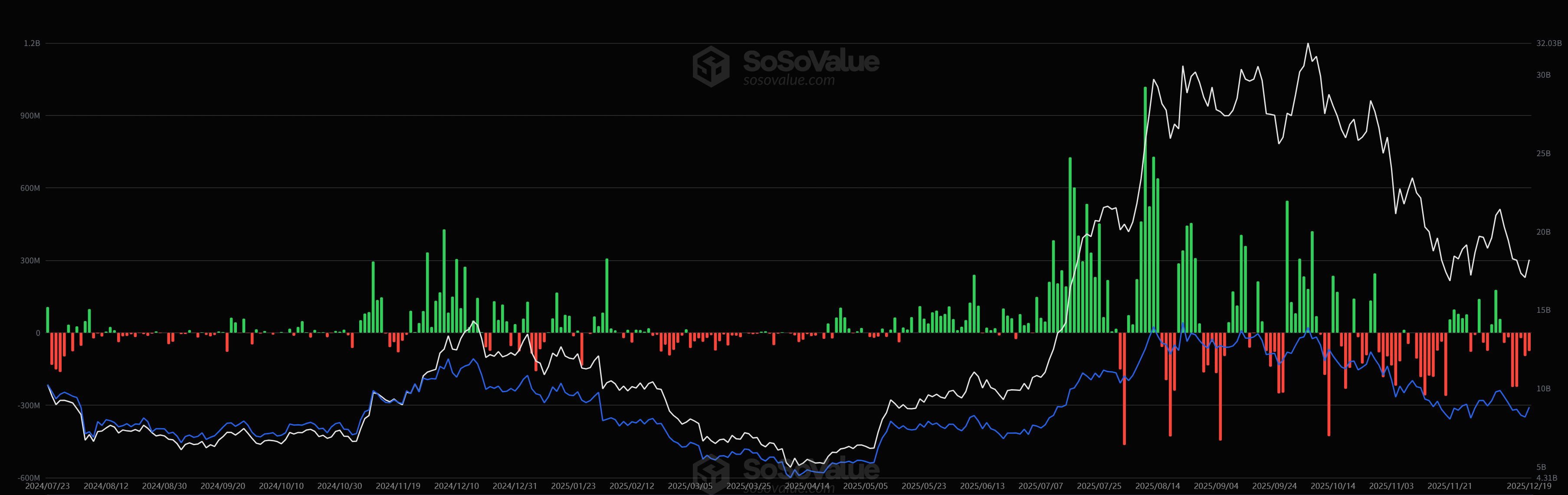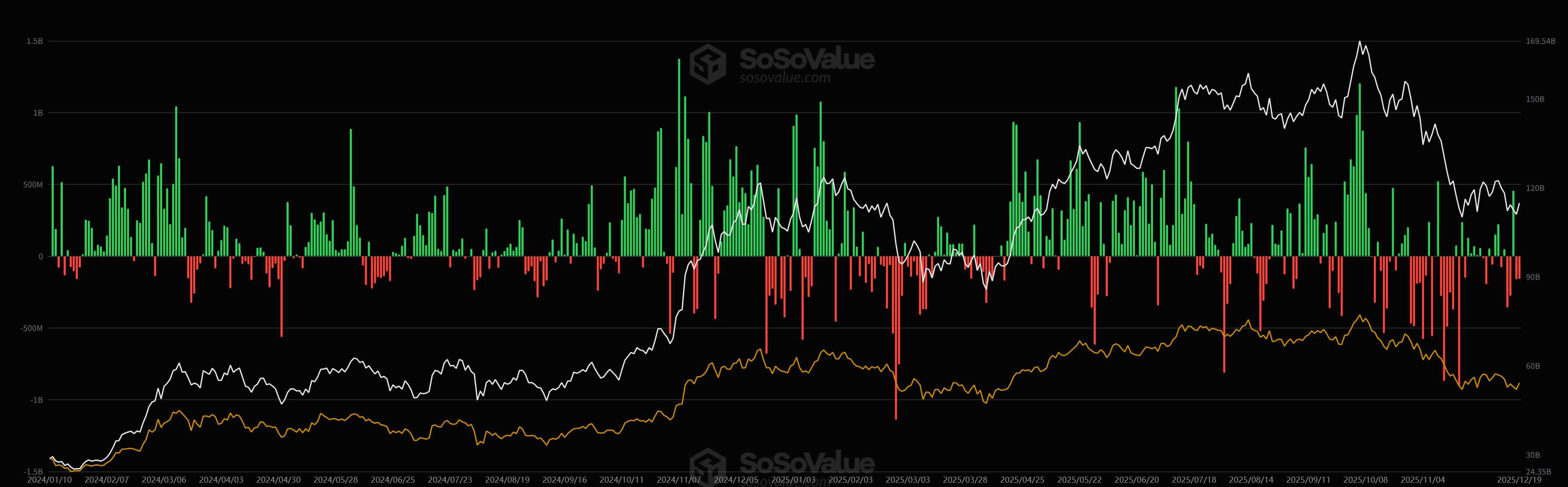 3)ビットコイン現物ETFの資金流入出と運用資産残高合計、ビットコイン価格