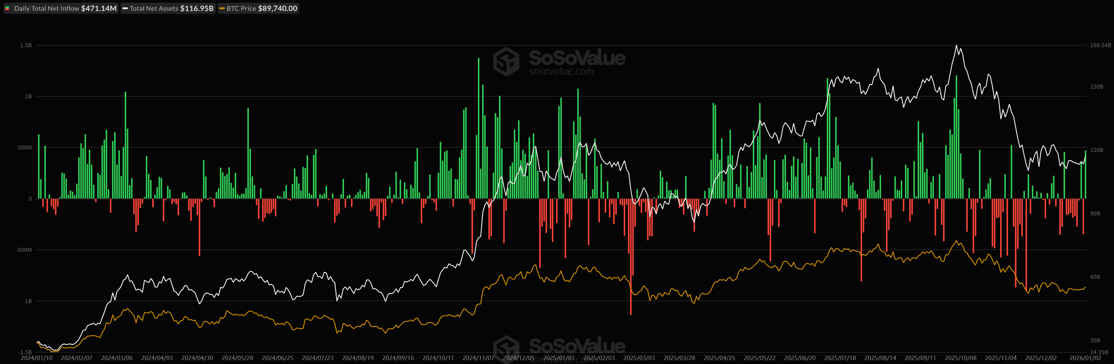 先週の暗号資産市場は年末年始期間で市場参加者が少なく、低い流動性のなか米国に上場されている現物ETFの需給によって乱高下するも週次で純流入となり上昇で週末を迎えた。