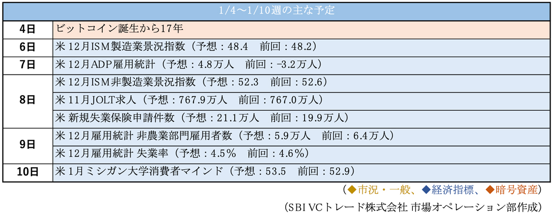 今後については、年末年始特有の低流動性が解消される中で、米国現物ETFフローや米国投資家の動向が引き続き短期的な価格形成に影響を与えると考えられる。一方、2026年に向けては暗号資産を巡る規制・制度面での進展が期待されており、短期的な値動きとは別に、中期的な投資テーマとしての注目度は維持されている。足元では、米国現物ETFへの資金フローやCoinbaseビットコインプレミアム指数の改善が継続するかを見極めつつ、過度な楽観・悲観に傾かない慎重なスタンスが求められよう。