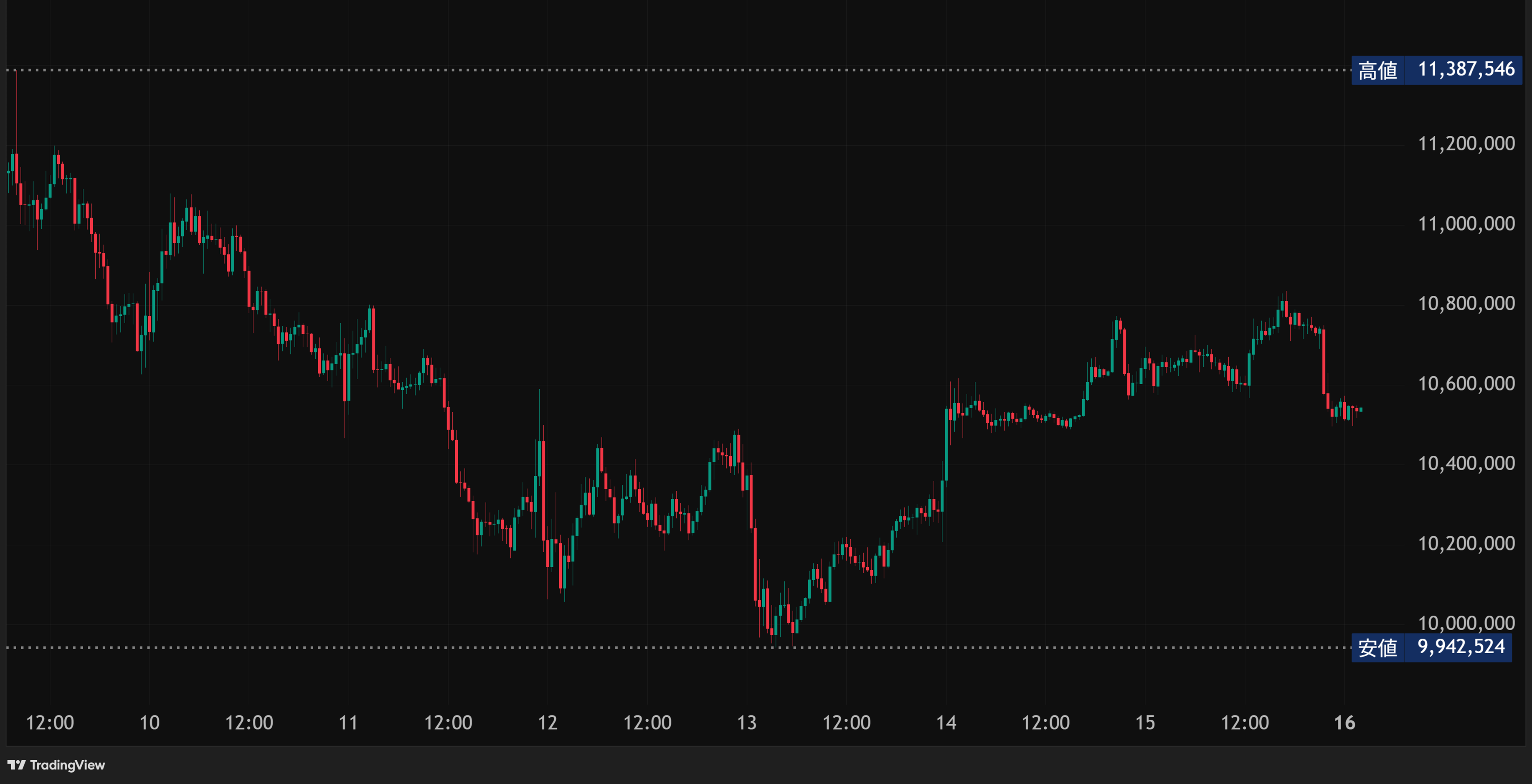 週中、米国の小売売上高が予想を下回ったことで利下げ期待が高まり、一時70,000ドル付近まで上昇。しかし地合いの弱さから上抜けできず、70,000ドルの壁に阻まれて反落した。11日には、雇用統計を控えリスクオフムードが強まり、66,500ドル付近まで下落。その後発表された雇用統計は、雇用者数・失業率ともに予想より良好な結果となり、一時68,800ドル付近まで上昇した。ただし、利下げ期待の後退を受けて債券利回りが上昇し、米国株式指数が下落すると、BTCも67,500ドル付近で停滞した。また、ハイテク株の失速やコインベースの取引所収益の悪化や保有暗号資産の評価損などの結果を受けて、下落する側面もあった。
