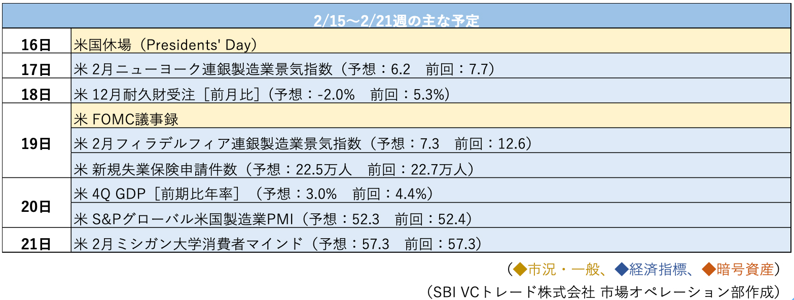 今週以降は、70,000ドルで底値を固められるかが焦点となりそうだ。70,000ドルより上で底固めが進めば、前月末からの下げ過ぎに対する調整で上昇に転じる可能性がある。一方、70,000ドルを明確に上抜けできない場合は、先週同様に米国株式市場の下落と歩調を合わせ、軟調な展開が続くことも想定される。