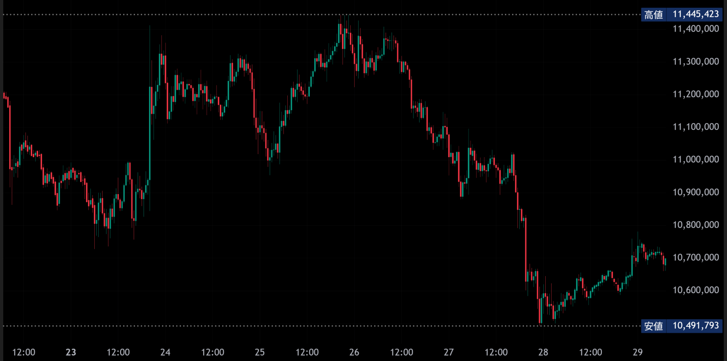 2) BTC/JPY週間チャート(30分足)