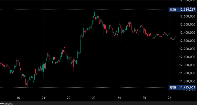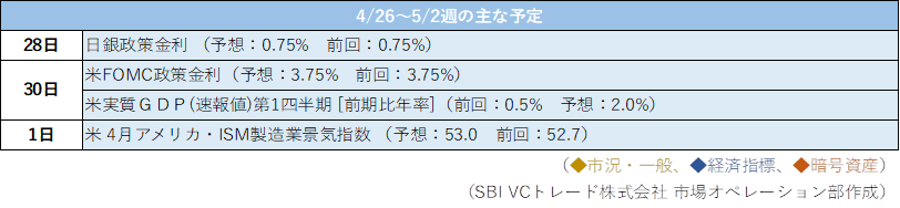 今週も中東情勢の動向がBTCの価格に大きく関与してくるだろう。先週の停戦延長や和平協議再開への期待が市場への安心感につながっており、今週は和平協議の進展があるかが注目される。一方で交渉が停滞した場合には下落要因にもなりかねないので、今週も米国、イランの政治家の発言により価格が変動してくるだろう。和平協議が進展し投資家心理が大幅に改善してくるようであれば、先週は超えられなかった80,000ドルを突破し、長いレンジ相場を抜け90,000ドルを目指す展開になるかもしれない。