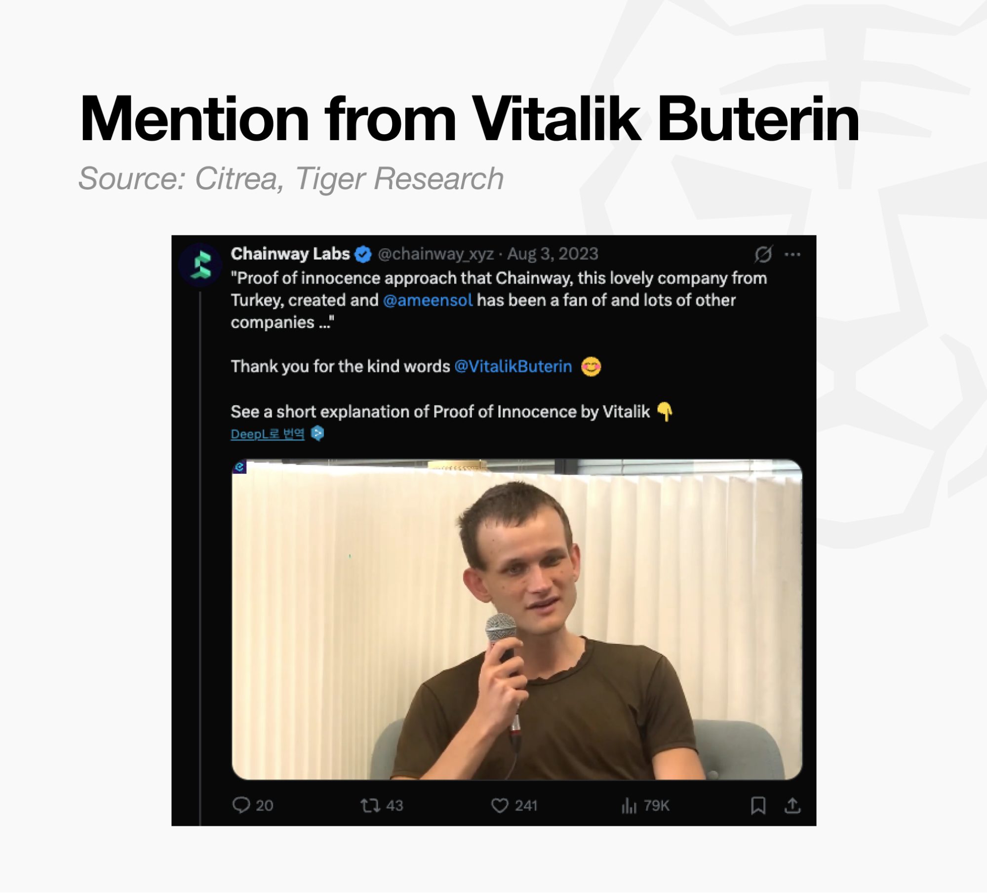 ビットコイン上での構築以前、チームは「Proof of Innocence」を開発・提供している。2022年、米国財務省はマネーロンダリングを理由にTornado Cashを制裁した。その余波は即座に広がった。不正行為と無関係の無実のユーザーも同じように扱われた。